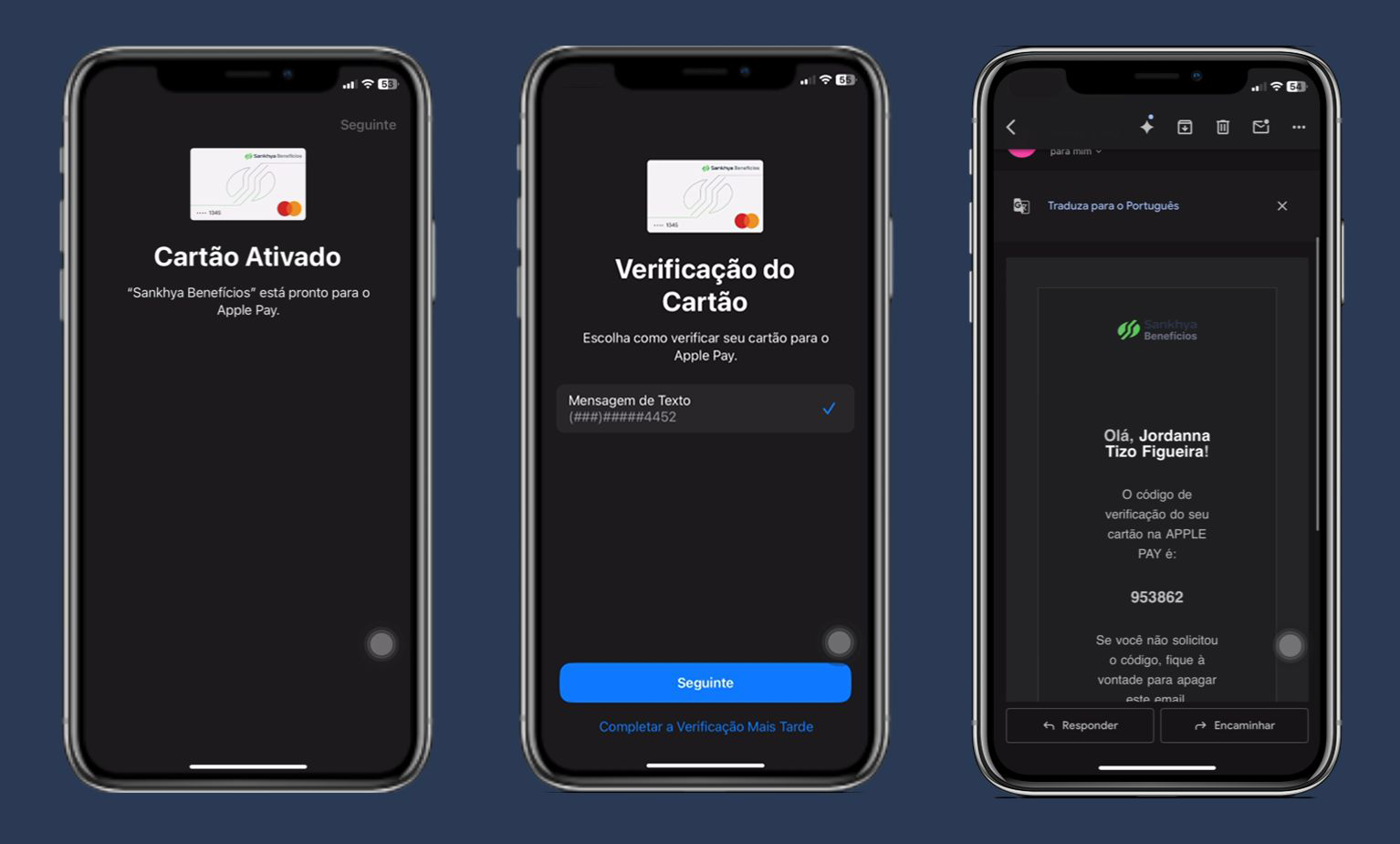 Durante a inclusão do cartão virtual na Wallet: