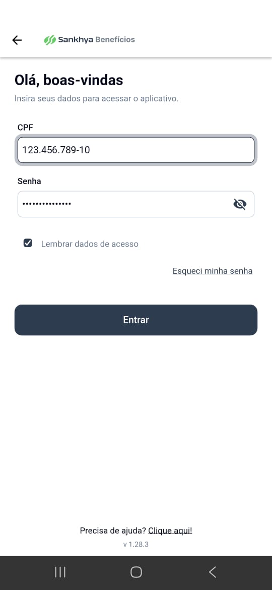 Abra o aplicativo Sankhya Benefícios no seu celular.