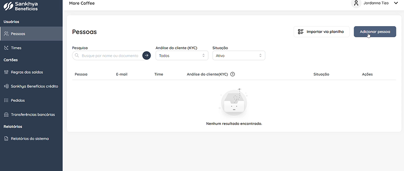O cadastro de colaboradores é o primeiro passo para iniciar as configurações da plataforma. Na aba “Pessoas”, você poderá cadastrá-los adicionando um a um ou por meio de importações.